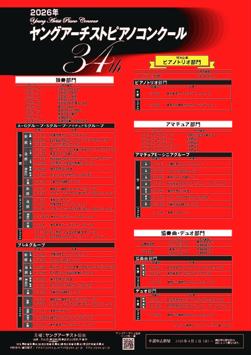 2026年 34回ヤングアーチストピアノコンクール 受賞者によるコンサート